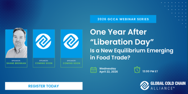 Global trade ministers will meet at the end of March for the annual WTO Ministerial Conference in Cameroon, almost exactly one year after the United States implemented the first “Liberation Day” global tariff policy reset. GCCA SVP Shane Brennan will host a panel of experts to reflect on lessons learned and anticipate what’s next for the global cold chain.