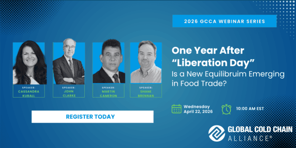 Global trade ministers will met at the end of March for the annual WTO Ministerial Conference in Cameroon, almost exactly one year after the United States implemented the first “Liberation Day” global tariff policy reset. GCCA SVP Shane Brennan will host a panel of experts to reflect on lessons learned and anticipate what’s next for the global cold chain.